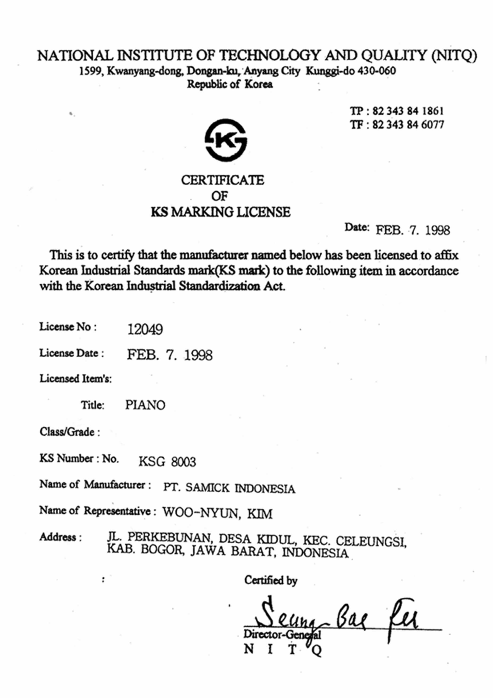 韓國產(chǎn)業(yè)規格標準認證書(shū)(英文)